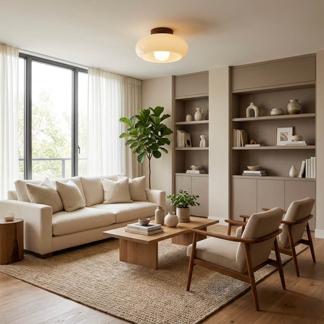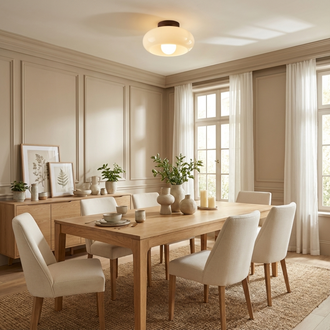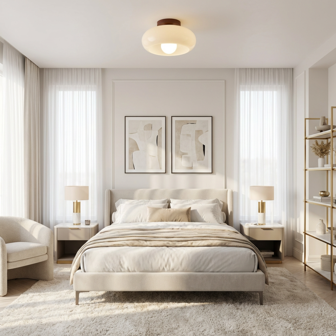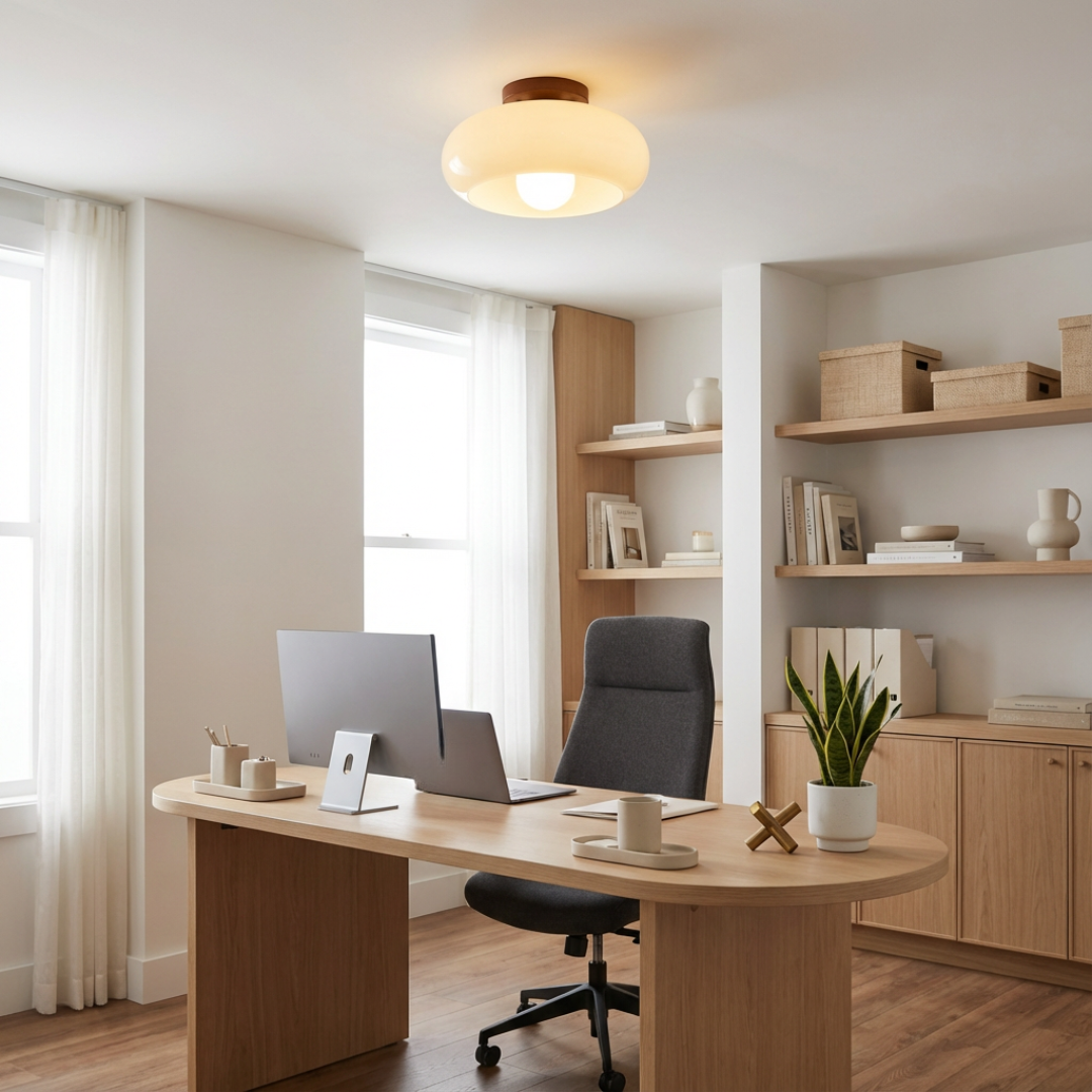 - Rounded Bauhaus form: Smooth circular shape creates a clear and balanced ceiling profile.