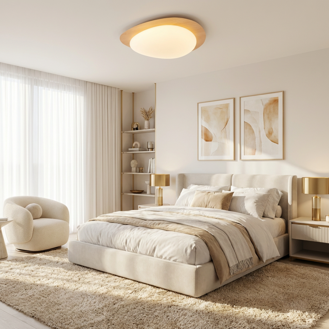 Organic disc profile: Asymmetrical, rounded form creates a soft ceiling outline.