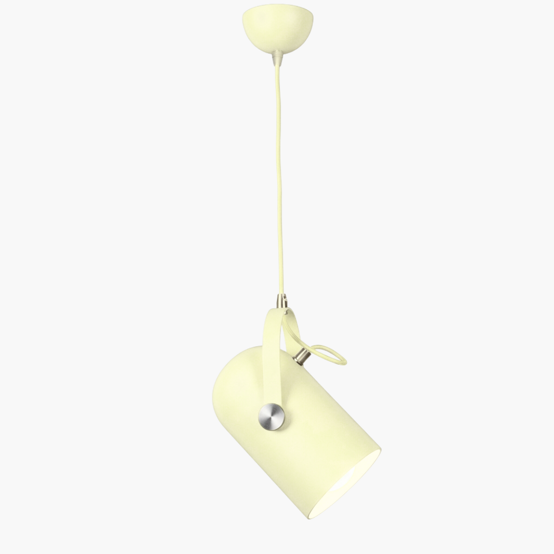This pendant light features a straight cylindrical shade with a rounded base and a closed upper section. It is suspended from the ceiling by an adjustable cable, allowing the hanging height to be set according to ceiling height and room layout. The upper connector securely joins the shade to the suspension system for stable indoor installation.