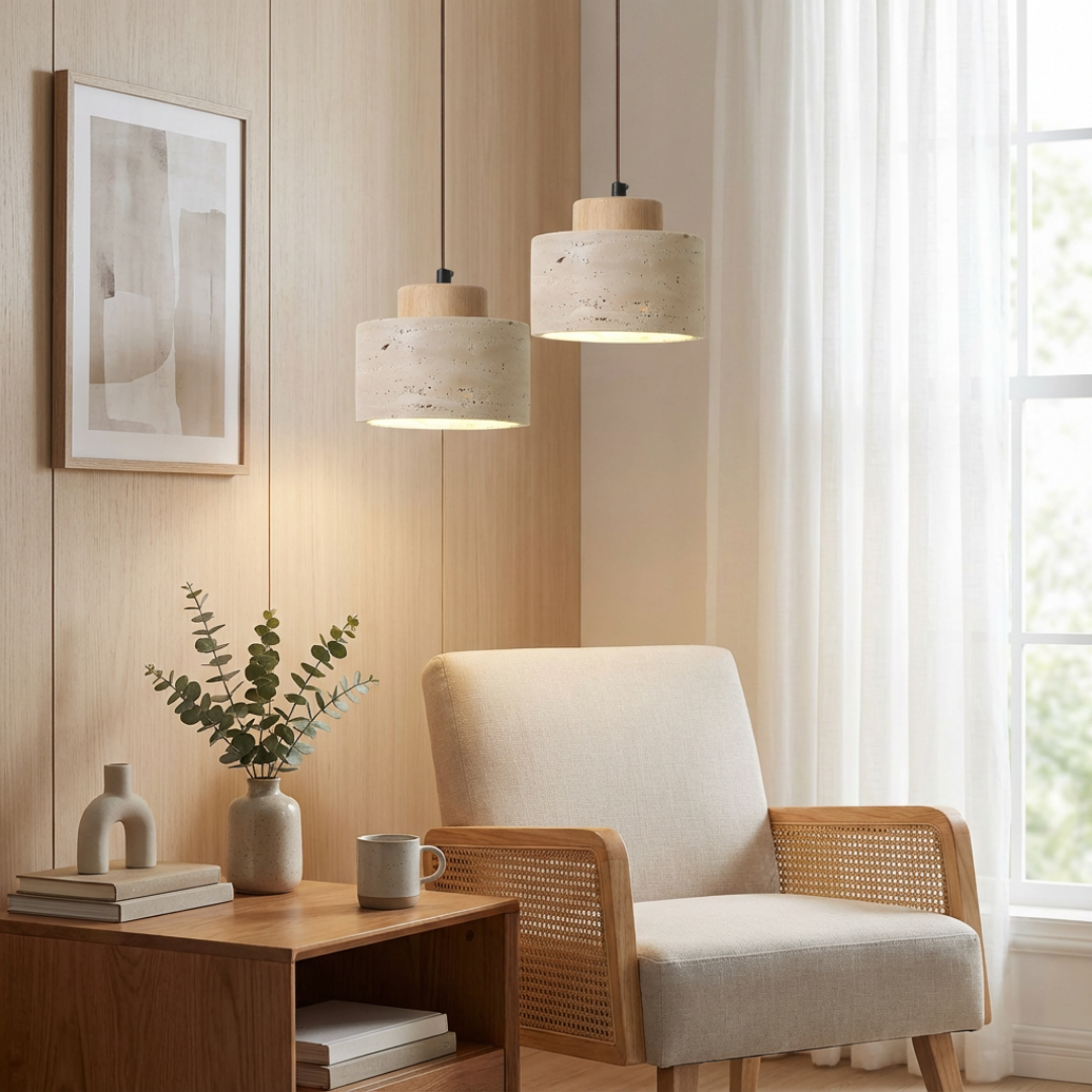 This pendant light features a compact cylindrical body combined with a defined upper section, forming a clear two-part structure. The fixture is suspended by an adjustable cable, allowing the hanging height to be set based on ceiling requirements. Its compact size makes it suitable for single installations or grouped arrangements in a variety of interior spaces.