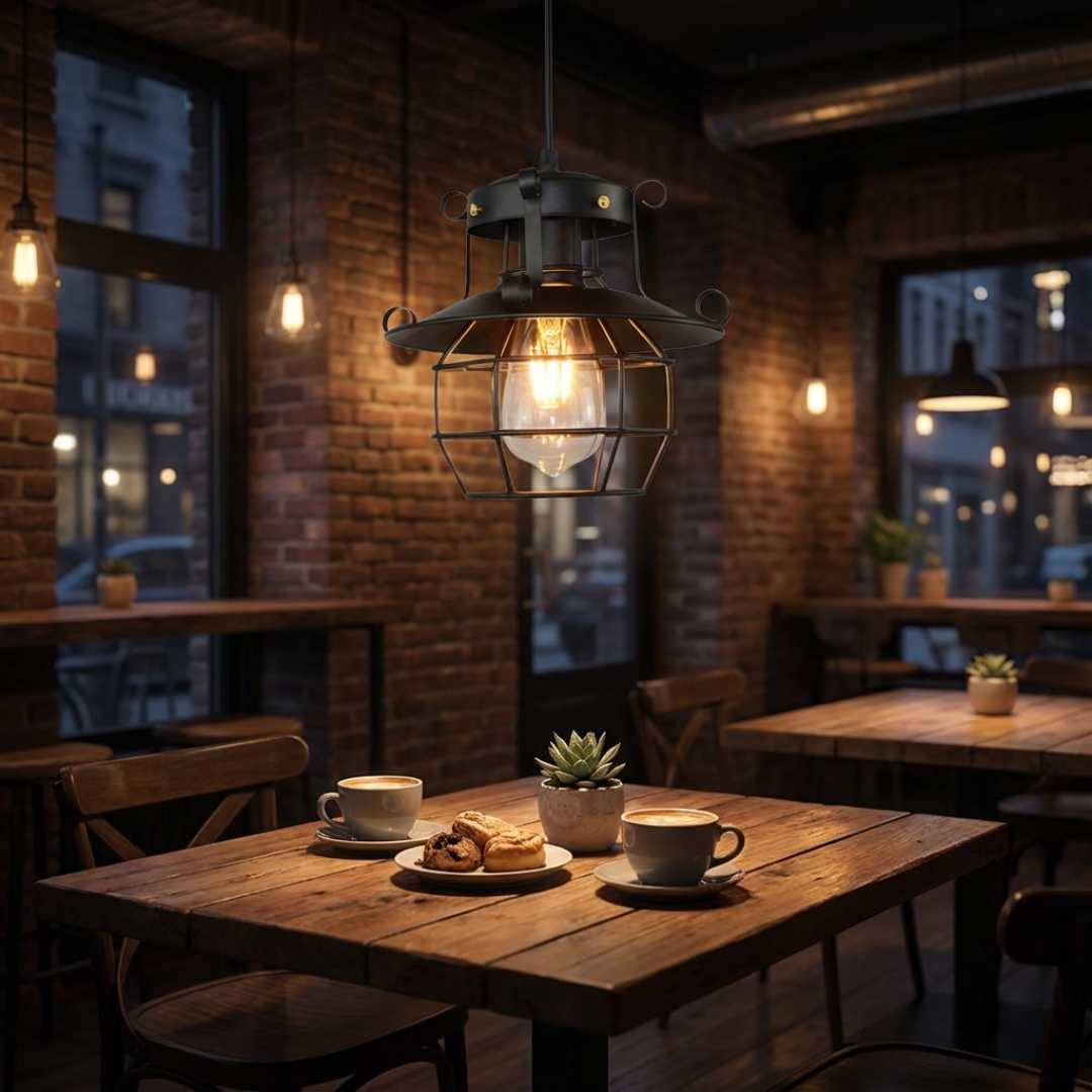 - Cage-style structure: Enclosed frame surrounds the bulb and defines the overall form.
