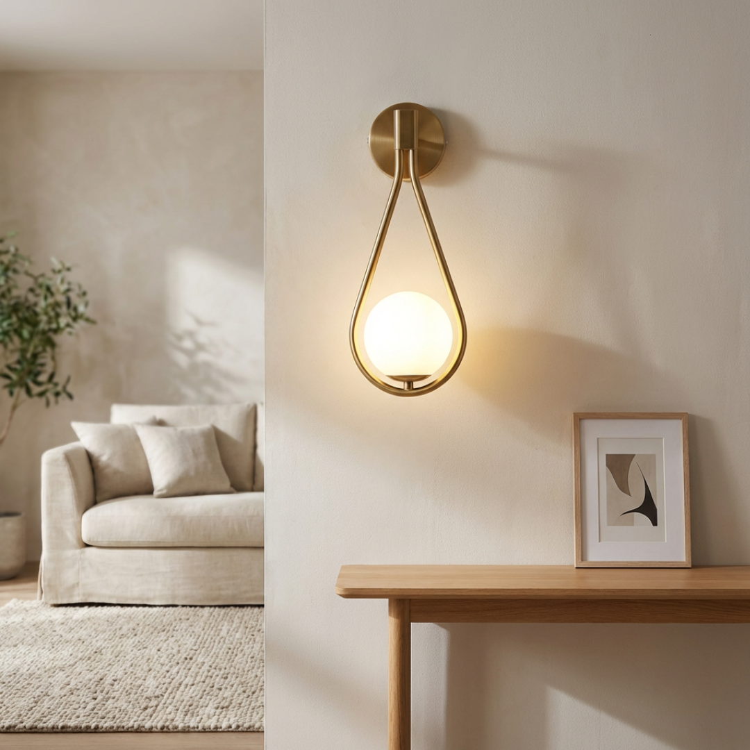 This wall light features a teardrop-shaped metal frame designed for direct wall mounting. Providing soft, diffused lighting, it works well in bedrooms, hallways, living rooms, and other indoor spaces. Its streamlined silhouette adds a modern, understated touch to contemporary interiors.